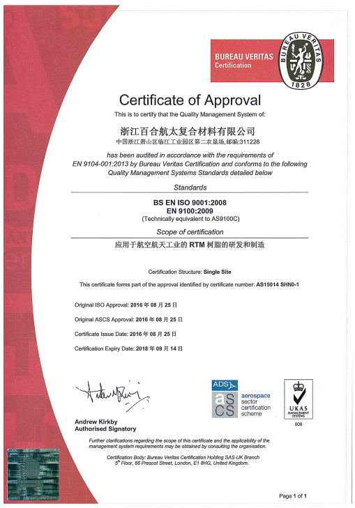 浙江百合航太復合材料有限公司成立于2014年,是集先進復合材料產品開發(fā)設計、生產、銷售、服務于一體的高新技術企業(yè), 主要產品有復合材料液體成型樹脂、碳纖維、玻璃纖維和芳綸纖維預浸料、以及結構粘合劑膠膜等。